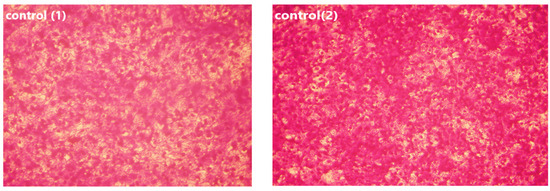 To detect the antiviral activity of USeNPs against HAV HM175, MTT assay was utilized (Table 1) along with Vero cells (Figure 10). Figure 10 shows the cytotoxic activity of USeNPs with Vero cells with CC50 = 331.76 ± 4.79 µg/mL in order to evaluate the risk of these nanoparticles. Xia et al. [63] found that SeNPs inhibit Madin–Darby canine kidney cells with H1N1 by preventing chromatin condensation and DNA fragmentation. Table 1 shows the antiviral effects of the tested compounds on the hepatitis A virus (HAV-10) when tested at maximum noncytotoxic concentration of 100 µg/mL. USeNPs have good antiviral activity (+++) against the tested virus with 74.13 ± 3.79% inhibition, and EC50 = 57.41 ± 2.37. The ratio of CC50 to EC50 was used to calculate the selectivity index ((SI) = 5.78)) to indicate whether USeNPs had sufficient antiviral activity which exceeded its toxicity [43]. This index is referred to as a therapeutic index, and it illustrated that USeNPs is an active antiviral agent which warrants further study since compounds with SI ≥ 2 are described as active43. The antiviral activity of SeNPs against various other types of viruses is likely due to the SeNPs’ direct binding to viral envelope glycoproteins which prevents viral entry into host cells, even though the mechanism of action has not been well-studied [64,65].