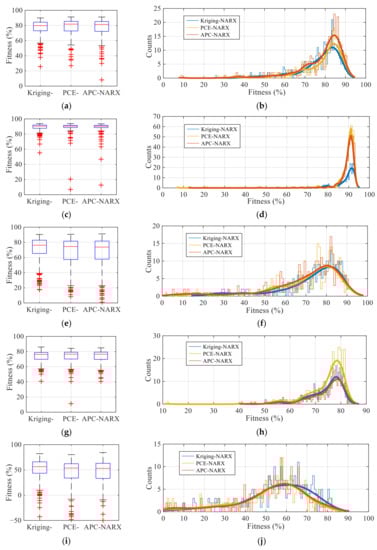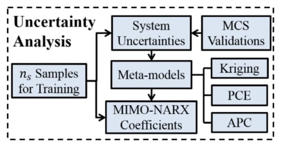 - Mai, C.V.; Spiridonakos, M.D.; Chatzi, E.N.; Sudret, B. Surrogate modeling for stochastic dynamical systems by combining nonlinear autoregressive with exogenous input models and polynomial chaos expansions. Int. J. Uncertain. Quantif. 2016, 6, 313–339. [Google Scholar] [CrossRef]