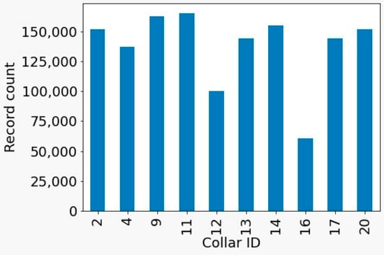 Most collars recorded the animals’ activity for more than 200 h (see Figure 1), and most records corresponded to the night period during which the animals were stabled. To standardize the analysis process, collars with fewer than 100 h of data (i.e., 1, 5, 8, 10, and 15) were excluded from analysis.