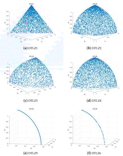 where It is the current number of iterations and MaxIt is the maximum number of iterations. The maximum number of iterations for the two-objective test function was set to 800, while the maximum number of iterations for the three-objective test function was set to 1500.