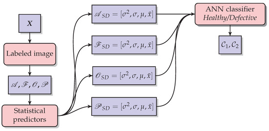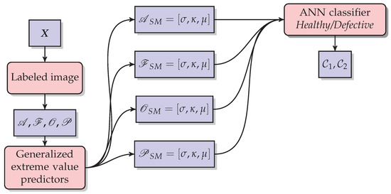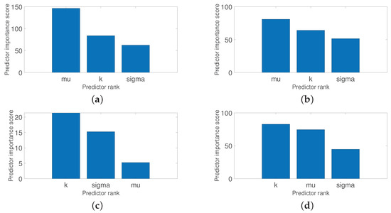 The first two are related to feature extraction from statistical-based learning methods coupled with a conventional ANN as a classifier and a detector. Please note that these methods have not been used before as image classifiers for fruit quality detection. For descriptive statistics, all predictors were used. However, the median and the variance were the most representative predictors to discriminate between a healthy raspberry and a raspberry with some disease or defect, as shown in Figure 13. The same occurs with statistical modeling based on the generalized distribution of extreme values. All predictors were used, but the shape and the location parameters were the most significant predictors, as shown in Figure 14. Remember that these predictors are the input of the ANN whose function is to classify the raspberry. The generalized extreme value distribution achieved an 84.50% detection rate on average, while the descriptive statistical method achieved an 81% detection rate on average in the raspberry quality detection. The last method uses directly Faster R-CNN as feature extraction, classifier, and detector, achieving a 91.2% detection rate on average. These results are shown in the first three rows of Table 5. Please note that they are within detection rate standards.