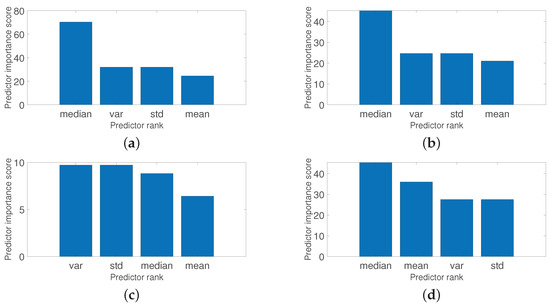 Feature ranking from the raspberries diseases and defects using statistical modeling. (a) Albinism. (b) Fungus-Rust. (c) Over-ripeness. (d) Peduncle.