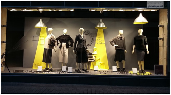 - Somoon, K.; Sahachaisaeree, N. Factors determining window display conveying merchandise’s Positioning and style: A case of shopping mall clothing display targeting undergraduate students. Procedia Soc. Behav. Sci. 2010, 5, 1236–1240. [Google Scholar] [CrossRef]