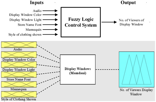 Variables that have an effect on display window design can be concluded as the following: color tone, diffused/spotted lighting, graphical illustration/non-graphical illustration, text/non-text, existence of prop/non-prop, number of prop, level of complexity, existence of mannequin/no mannequin, abstract/realistic mannequins, whole/partial perception, and ordered/disordered displays [7]. This study summarized the number of the most influential factors that affect the number of viewers for display window shops, which are discussed in detail in Section 3. Furthermore, this study utilizes the FLC system as a tool of artificial intelligence to optimize the number of viewers for display window shops.
