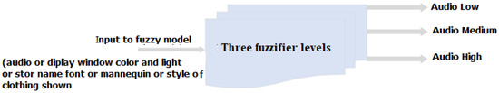 Audio, display window colors, display window light, font of the store name, mannequins, and their clothing style are the inputs of the fuzzy system for the optimization of the numbers viewers of display windows (fuzzy model output).