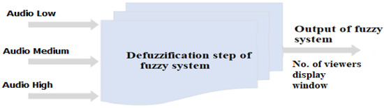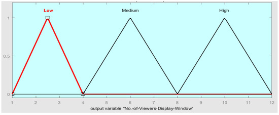The triangular membership function used in the defuzzification process for the fuzzy output with low, medium, and high levels to optimize the numbers of display windows’ viewers is shown in Figure 15. Levels of fuzzy system output are explained in Table 2.