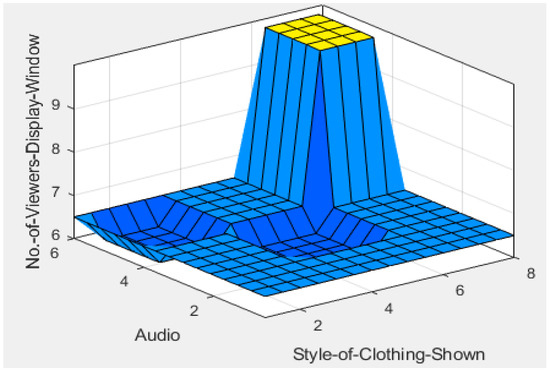 The results of if–then rules for display windows’ fuzzy system provided maximum and minimum values of numbers of viewers, as shown in Table 4 and Figure 16, respectively, whereas the error rates for the inputs and output are given in Table 5.