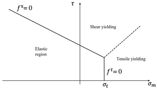 Figure 2. Yield criteria of the Drucker–Prager (D-P) model that includes the tensile stress cut-off.