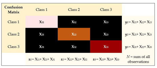A value less than 0 indicates that there is no agreement between the actual classes and the predicted classes, while a range of 0–20 shows imperceptible agreement. The ranges between 21–40, 41–60, 61–80, 81–99 indicate fair, moderate, substantial, and excellent agreement, while a value of 1 is designated for perfect performance of the model.