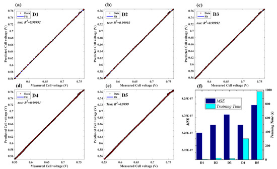 - Five grouping strategies for the output values are applied for the ANN model. All of the model structures have a good prediction accuracy, with R2 values greater than 0.999. The predictions under different stack assembly torques fit the experimental results, with margins of error less than 2 mV.