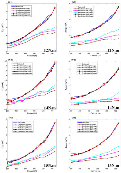 - The and range values positively correlate with the load currents under different assembly torques, while the curve slope declines as the model output dimension reduces.