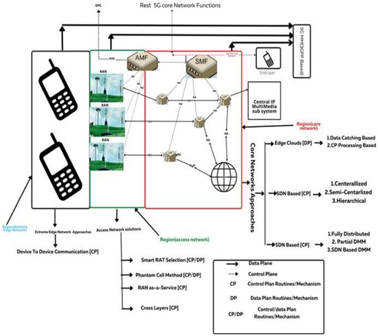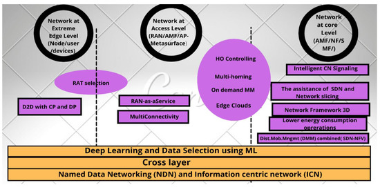 Similarly, as noted in the literature [2,3], these MM techniques are only feasible for current architectures and unable to cope with 5G and future networks. Next, the MM techniques of group handover, progressive cell association [4,5,6], etc., are also not suitable for tackling the issue of complexity and core network signaling in 5G and future networks. Consequently, such unfeasible aspects have forced researchers to initiate a great revolution in MM mechanisms for 5G and future networks. Researchers face issues in molding existing MM to the 5G network. These issues are encountered due to the architectural nature of the 5G network, in which the provision of diverse types of services and satisfying the expectations of users (120× increase in data rates) are a must compared to the LTE network [6,7]. Moreover, the theme of 5G is to ensure minimum latency with required reliability for delay-sensitive applications, such as emergency services, augmented reality, multimedia applications, real-time applications, etc. [6].