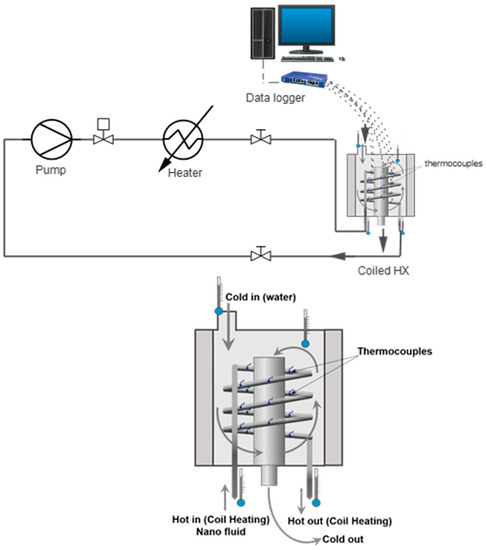 - Huminic, G.; Huminic, A. Heat transfer characteristics in double tube helical heat exchangers using nanofluids. Int. J. Heat Mass Transf. 2011, 54, 4280–4287. [Google Scholar] [CrossRef]