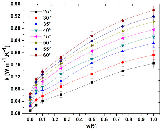 - Increase in suspended CuO-Gp nanoparticles mass fraction, their clustering, and random collisions increase resulting in an increase in the hybrid nanofluid thermal properties.