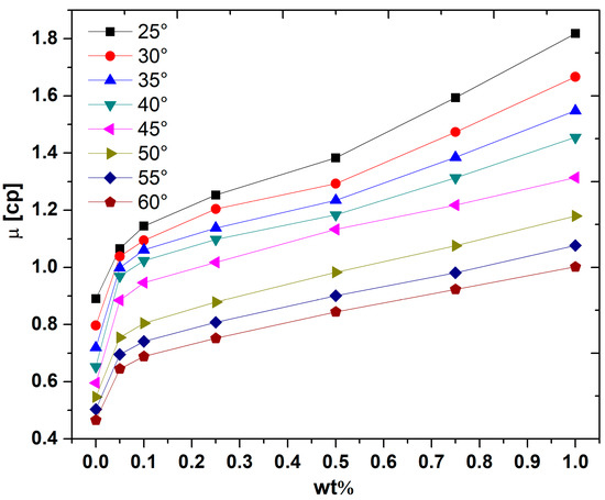 - The increase in temperature leads to a reduction in viscosity while the rise of nanoparticles mass fraction enhances the nanofluid viscosity.