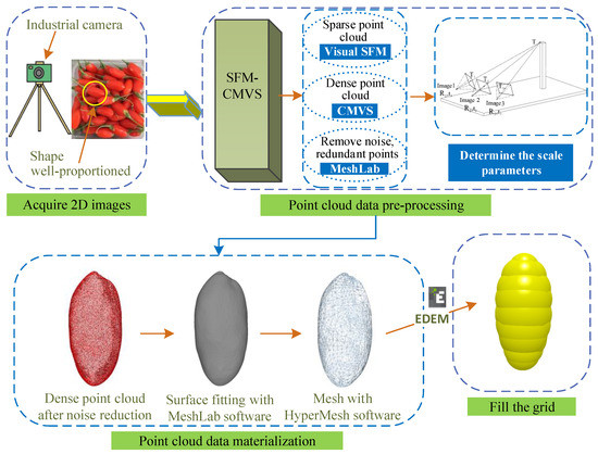 - We used the SFM-CMVS technique to extract the outline of the goji berry, and we obtained the dense point cloud and fitted model of the goji berry. The model was meshed to obtain a 3D model of the fresh goji berry, which was used in EDEM. A discrete element simulation particle model of fresh goji berry was established by using the multi-sphere particle aggregation method.