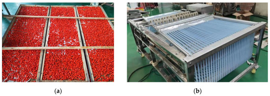 - For the accurate and non-destructive grading of fresh goji berries, we designed a variable gap-type fresh goji berry grading machine. The key component of the machine, the grading belt, was made of silicone rubber material.