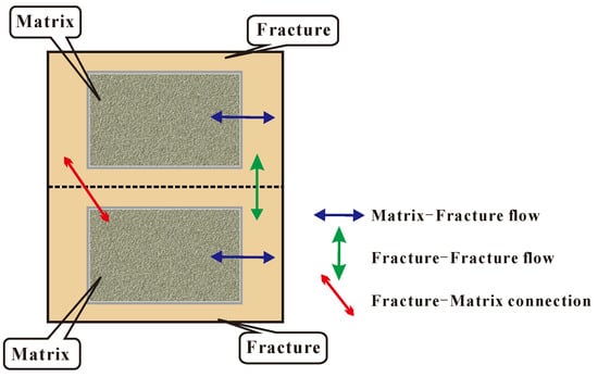 Using an accurate mathematical model to describe the seepage-geomechanical coupling is the key to complete the numerical simulation of gas reservoirs. Currently, the simulation of rocks with natural fractures is mainly based on the continuous medium model and discrete fracture model [,]. Ghafouri and Lewis [] first proposed a dual-medium model by using a finite element method to treat natural fractures. Wei and Zhang [] proposed a triple-porosity/dual-permeability model for coalbed methane mining, which effectively simulates the coupling effect between stress and microporosity expansion and contraction. The continuous medium model focuses on macro-scale fracture seepage, but ignores the heterogeneity of the reservoirs. The discrete fracture model can calculate matrix and fracture nonlinear deformation separately, but the calculation is less efficient []. The models above mostly use the full-coupling method, which is only applicable to a homogeneous model. The iterative coupling method can truly reflect the heterogeneity and anisotropic characteristics of the reservoirs, and this method has high correlation.
