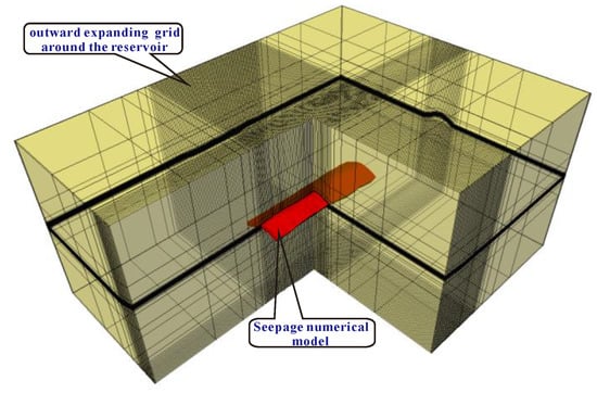 where σij is the effective stress tensor, fi is the volume force tensor, α is the effective stress coefficient, δij is the Kronecker delta, εij is the strain tensor, u is the displacement component, [D] is the elastic matrix, [Dep] is the elastic-plastic matrix and A is the strain hardening parameter. According to the law of associated seepage, when the yield function, F, and plastic potential function, Q, in the matrix are equal, [Dep] is a symmetric matrix.