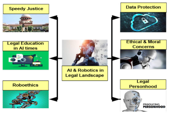 Technology enables society to conduct affairs smoothly and to enhance the experience of human lives [1]. The digitalized and modernized legal ecosystem’s technological underpinnings ensure expeditious facilitation of access to justice [2]. The unthinkable and unprecedented technological growth has invariable and inextricable legal complexities and reverberations. The goal to build a resilient and formidable digitalized justice and legal ecosystem found its origin in the Sustainable Development Goals (SDGs) [3], which prescribe a humanitarian imperative to fight off social fissures by the prescriptive force of Goal 9, i.e., building resilient infrastructure, sustainable industrialization, and foster innovation [4]; and Goal 16, which proposes sustainable societal development, access to justice, and building effective and accountable institutions [5]. The success of that infrastructure’s development is through incorporating innovative yet disruptive technological innovations such as Artificial Intelligence (AI) and Robotics into the legal ecosystem [6]. The innovations will be bolstered if a suitable legal infrastructure is cultivated and assimilated. The legal ecosystem comprises an entire body of interconnected systems whose well-oiled performance ensures the proper functioning to achieve revitalized administration of justice. From a litigant who goes to a lawyer to solve a legal tangle; an advocate hearing the complaint and analysing the applicable law; the processing of endless documents and precedents finding exercises; filing of cases before the jurisdictional courts; court parsing through the available texts to form an opinion; argumentations; legal assistance by research associates; case law research through high-end legal databases; judgment delivery; judgment analysis, etc.; these examples are an indeterminable chain of legal transactions that take place right from the first blush with the legal system to the end of it. The AI & Robotics led issues in the legal landscape and the consequent challenges would help the readers studiously analyse the plethora of issues brought to the forefront by the technological redevelopment of legal system and processes.
