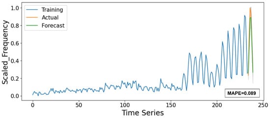 We created a time series data by connecting the number of marine accidents by navigator’s watch duty time for each year, as illustrated in Figure 2a. To avoid the significant gradient updates that can occur when using large values directly to train an LSTM network, we also rescaled the input data from 0 to 1 before training the LSTM model, as shown in Figure 2b.