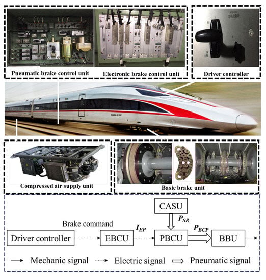 The microcomputer-controlled straight-through electropneumatic brake system, which mainly consists of a driver controller, a compressed air supply unit (CASU), an electronic brake control unit (EBCU), a pneumatic brake control unit (PBCU), and a basic brake unit (BBU), is widely adopted in trains.