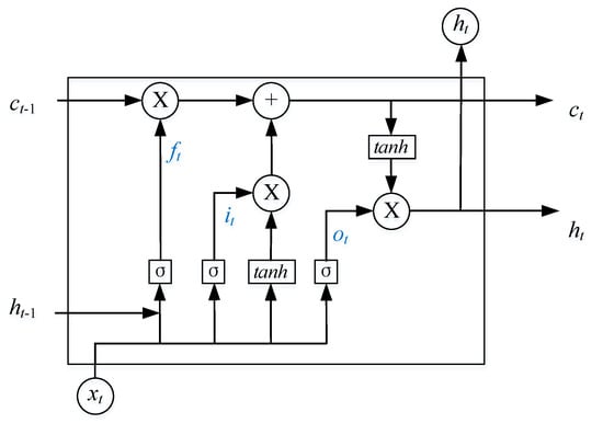 Finally, an initial output is obtained via the sigmoid activation function, and tanh is used to scale to [−1,1] to prevent gradient explosion. The output of the hidden layer of the LSTM network model can be obtained by multiplying with the initial output element by element. The calculation formula is as follows: