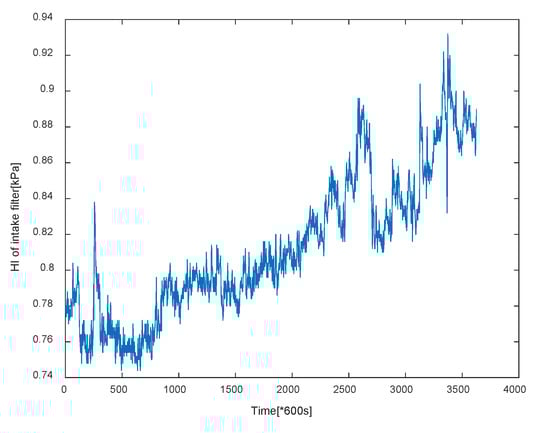 From the above theoretical analysis of the intake filter degradation mechanism, it is clear that the degradation degree of the intake filter can be assessed by measuring the input and output pressures and calculating the pressure loss, i.e., the health indicator of the intake filter can be expressed as