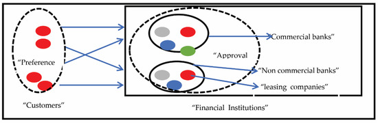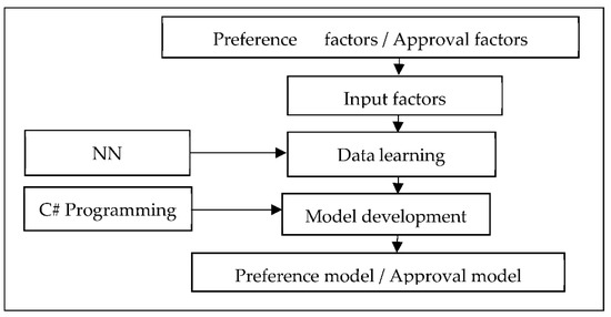 Based on the research analysis, the methodology is identified of how lending businesses gain an advantage over their competitors (commercial banks and non-commercial banks) in the business field. The analysis focuses on three major issues: the preference model, the approval model and the hybrid decision model. The former issue focuses on customers’ selection and the latter involves customers’ loan approval. This research data record is recorded from questionnaires completed by customers that are used to identify the preference factors and providers that are used to identify approval factors. The findings were analyzed confirmatory factor analysis (CFA) for further analysis to determine the direction of the service provider (lending companies). After the analysis was finalized, the model of preference and approval were created. Data mining was the tool used to create models that were applied to a supervised neural network (SNN). There are three models that were created for further analysis: the preference model, the approval model and hybrid decision model. In this research, the preference model means customer preferences and the reasons for their choosing commercial banks or non-commercial banks. The approval model means how providers from commercial banks and non-commercial banks tailor their products to their customers’ requirements. The preference and approval relationship model means the relationship between customers’ preference factors and providers’ approval factors, as shown in Figure 1. After the models were created and analyzed, the preference model provided the results of customers’ choices, while the approval model assessed the customers’ risk and identified methods of attracting customers. In addition, the preference and approval relationship model evaluated the probability for model approval at present and suggested ways to surpass policy. This analysis result will enable providers to reach the top in the ranking of their competitors in the same business line and to gain a substantial market share.
