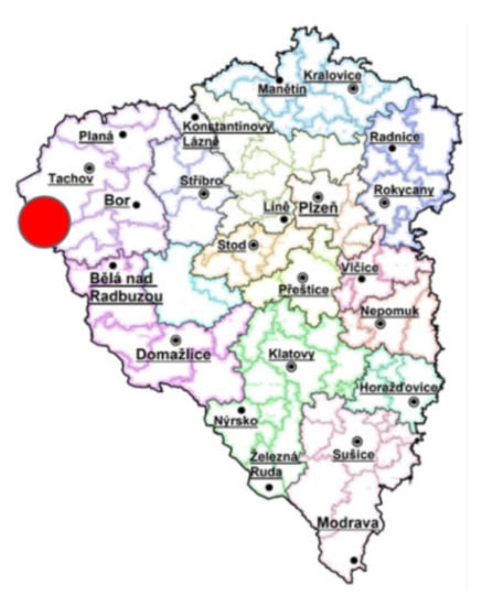 The exercise took place on the area behind the rest area in the cadastral area of the border crossing Rozvadov–Waidhaus, cadastral area Střeble, where an unspecified gathering of 250 people took place. Figure 1 shows the location of the event.