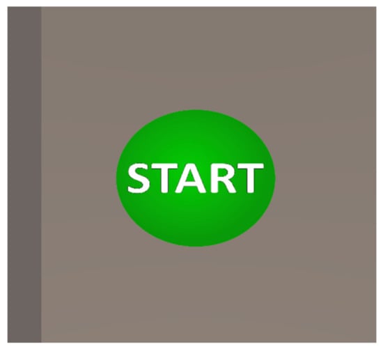 The only interactive elements are the ones in the corner that are used to select the project. Other models like the ambulance, gate, table, and rescue bag are inserted here for aesthetic reasons. They are meant to bring the users as close as possible to the environment they are in and to indicate what they are about to encounter. The user, by putting their hand with the controller and pressing the confirmation button, selects the module he wants to go through. This launches the basic information about the module. The selected module, in this case car accident, is coloured green so that the user knows which part he/she has selected. An avatar (see Figure 4), designed as a paramedic, guides the user through the training part. This is a virtual trainer who helps the user through the training, warns him/her which parts to watch out for and, when a mistake is made, advises him/her on how to perform the procedure correctly. For this type of scene, the avatar acts as a mentor in scene selection. After the user selects a module, the avatar will announce all the information about the selected training. It also outlines the situation and the setting to which the user will be transferred. The last part of the scene selection is the start button (see Figure 5), which is opposite the avatar from the layout view (i.e., to the right of the module selection). Again, it is inserted on the wall at eye level to be clearly visible to the user. In terms of more prominent handling, the green colour was chosen to ensure that the start button does not blend in with the wall. This step ends the possible module selection, and the user is already moved to the selected situation together with the avatar.