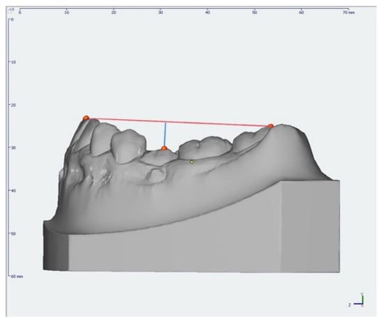 Digital measurement of the Curve of Spee in a dental arch with a persisting primary second molar.