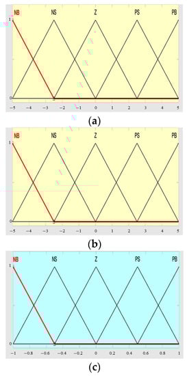 Therefore, the definition of fuzzy rules and corresponding membership functions in the proposed controller is described in Table 2 and Figure 2.