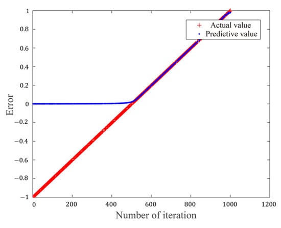 Therefore, the experimental results can be summarized in that the X-axis means the training iteration, and the Y-axis describes the error between the predicted and actual voltage. Since the wavelet network adaptively configures the appropriate number of hidden layers, it reaches a satisfactory accuracy of prediction at the 470th iteration.