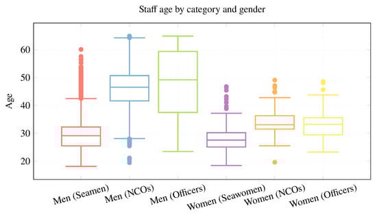 Spanish navy staff age by category and gender in 2007 [14].