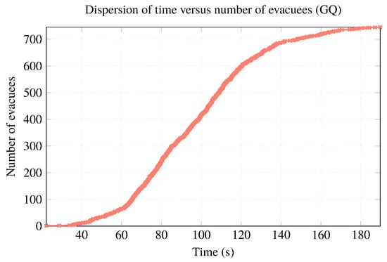 Dispersion diagram, time per number of evacuees (GQ situation, SIMONE).