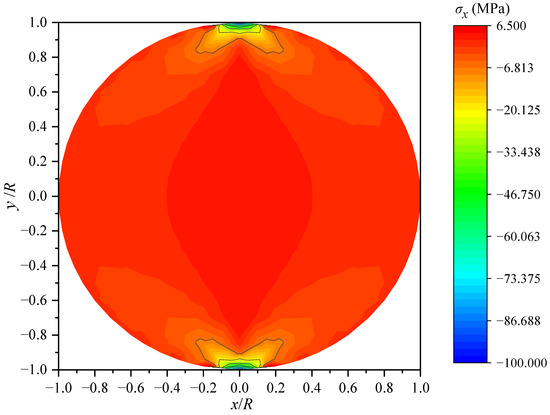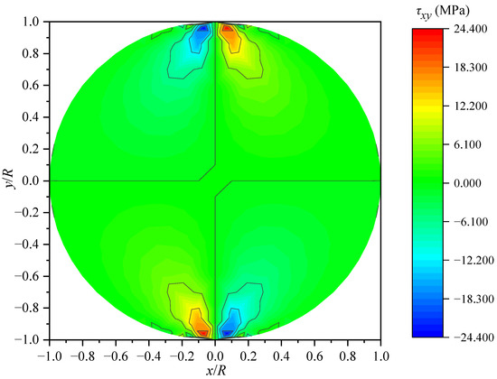 4. Numerical Example: The Axial Compression on the Part Boundary of the Circular Shaft