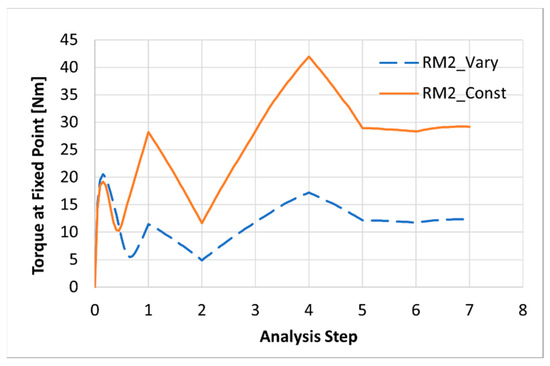 Variation of torque at fixed point with respect to analysis steps according to angle distribution.