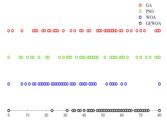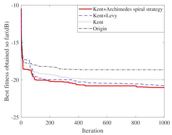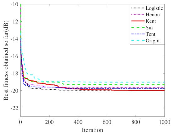 Here, the Kent initialization method is adopted in GEWOA because it has the best search accuracy and faster convergence speed compared with the original method. Considering that the search accuracy is the most important criterion for array design, the selection is reasonable.