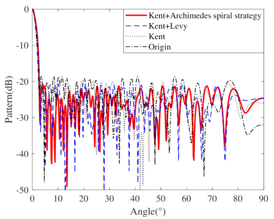 Figure 8, respectively. It can be seen that the PSLL of ASS is −21.02 dB, while the PSLL of Levy flight strategy is −20.76 dB. After adding ASS, the PSLL is 2.37dB lower than the original strategy. ASS improves the original strategy, and has a lower PSLL than the Levy flight strategy.