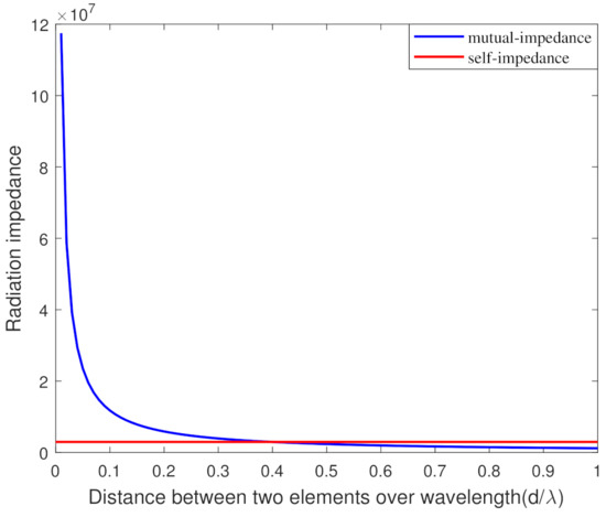 It can be seen that , mutual-impedance is less than its self-impedance. In the off grid array design, the operating frequency is 300 Hz, and the minimum spacing of array elements is set to 2 m due to engineering requirements. Since the minimum spacing is greater than 0.4 times the wavelength of the resonant frequency, the mutual radiation effect is less than the self-radiation, and it can be disregarded.