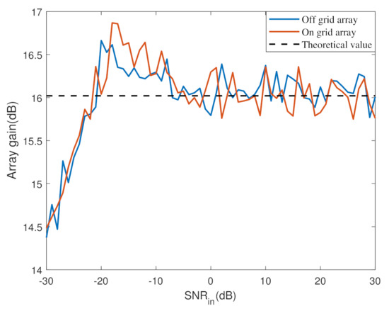 is higher than −20 dB, the array gain of both arrays decreases by, at most, 0.3 dB compared with the theoretical value, which proves the feasibility of the designed array based on the proposed method from the perspective of array gain.