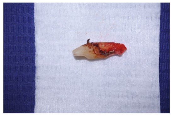 Among the 17 patients, the 17 teeth affected were: 4 lower incisors, 2 lower canines, 3 lower first molars, 2 upper second premolars, 2 upper first molars, 2 upper second molars, and 2 upper third molars. According to the patients, extraction was planned because the severe periodontal involvement could have hindered any periodontal or endodontic treatment. After extraction, teeth were examined to exclude decays or coronal leakages (Figure 1).