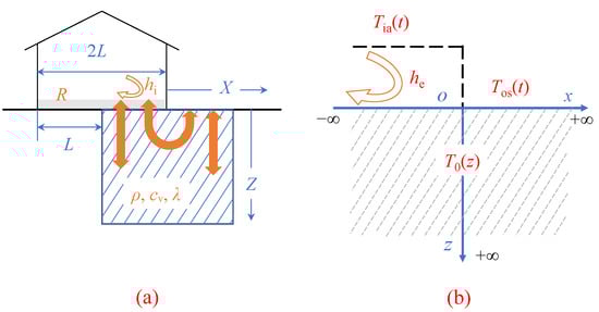 Ground-couple floor model of: (a) heat transfer; (b) semi-infinite solid.