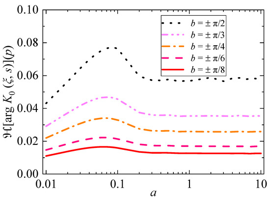 These integrals in Equation (28) are known as the Hilbert transform, which also could be approximated based on the FFT algorithm [33]. The ℌ [.] denotes the Hilbert transform. As shown in Figure 3, the Hilbert transform of the argument function arg K0(ξ, s) has an absolute maximum of under 0.08 when the argument of s belongs to (−π/2, π/2). Only half of the value of the Hilbert transform is the index of the exponential function in Equation (22). Even if it was treated as 0, the relative errors of results obtained are less than 5%. Thus, by ignoring the second term on the right-hand side of Equation (28), Equation (22) can be simplified to save computation time.