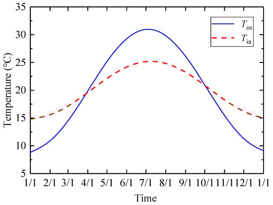 As shown in Figure 4, a case study of Chengdu city [35], the daily average outdoor ground surface temperatures were calculated by Equation (1). As shown in Figure 5, three terms of its Fourier series were picked.