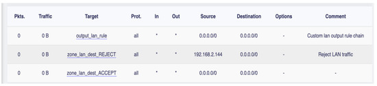 In order to validate the working mechanism of the proposed detection system, we have shown a scenario in Figure 7 where the connection from a home appliance is blocked by sending many packets to a victim server. As we can see in Figure 7, the network traffic originating from the source IP address, i.e., 192.168.2.144, is rejected by the router due to the sending of abnormal traffic to the victim server.