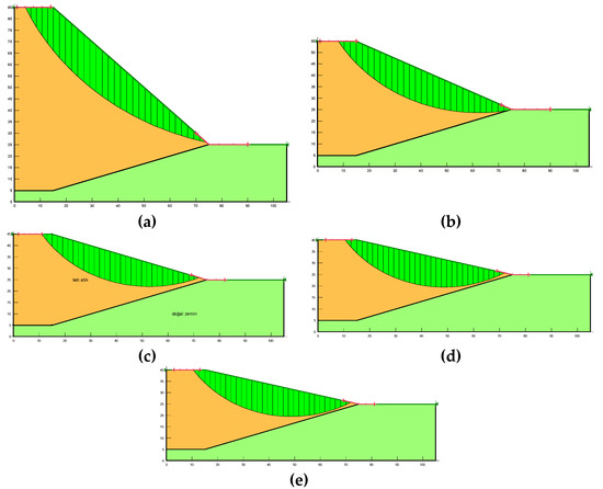 36]. Although there are some differences in practice between these methods, the common feature is the investigation of the slip mass equilibrium on a known or accepted critical slip surface. The slice method was used in the analyses performed in this study. The Bishop and half-sine function methods were selected in the calculations.