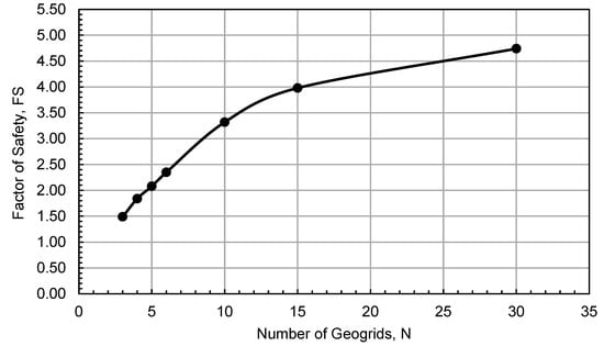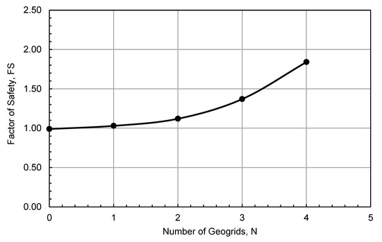 In the analyses, geogrid elements were used to model the geogrid reinforcement layers. The EA value of 1100 kN/m was entered into the program as the material property of the geogrid reinforcement layers.