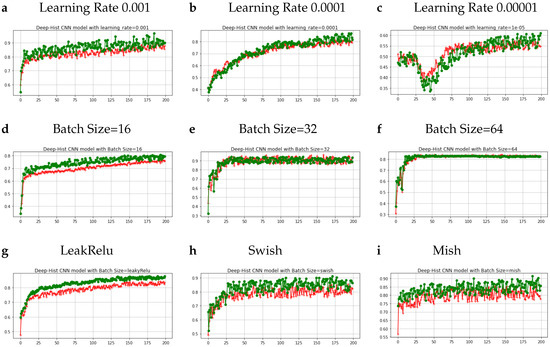 The proposed method, in essence, assesses the optimal hyperparameter value combinations and returns the one with the highest accuracy. To obtain the best accuracy in Algorithm 1, four hyperparameters must be modified. Combining these hyperparameter values can be conducted in various ways, including 4 values of the learning rate, four values of Kernel, four values of activation function, and four of batch size. For the binary classification job, the performance of the recommended models such as ResNet, DenseNet, MobileNetV2, and Deep-Hist are evaluated using a 5-fold cross-validation technique. The combined data set is divided into five sections, with four used for training and the fifth for testing/validation. The experiments are carried out five times. After evaluating the task’s performance of the classifier for each fold, the model’s average classification demonstration is computed.
